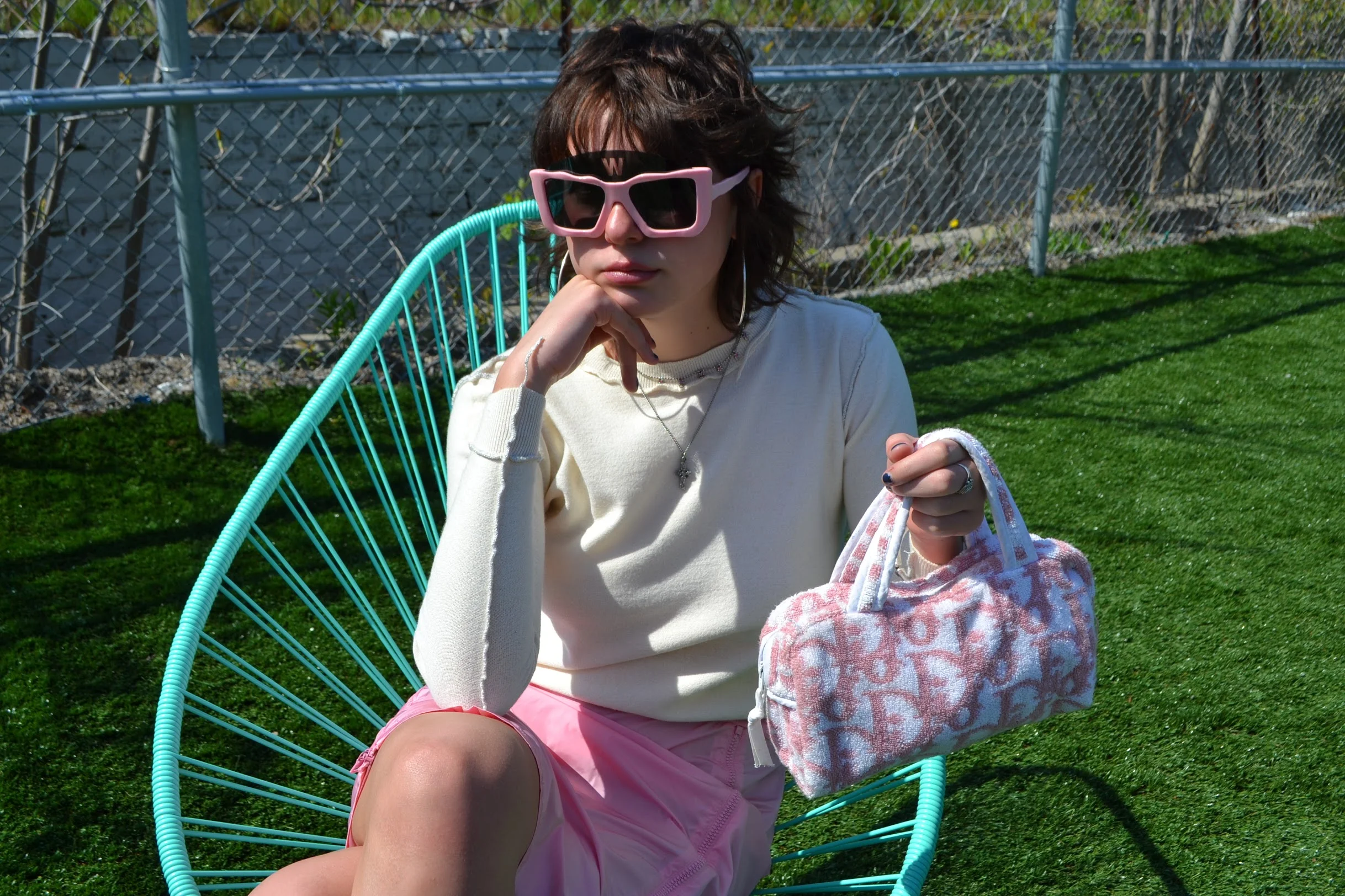 FEATURED: Walter Van Beirendonck x Linda Farrow Sunglasses, Dior early 2000s “Towel” Monogram Bag, Prada Sport 2000s Multi-Zippered Nylon Skirt and Martin Margiela Pre-00 reverse construction sweater with Glitter Hems